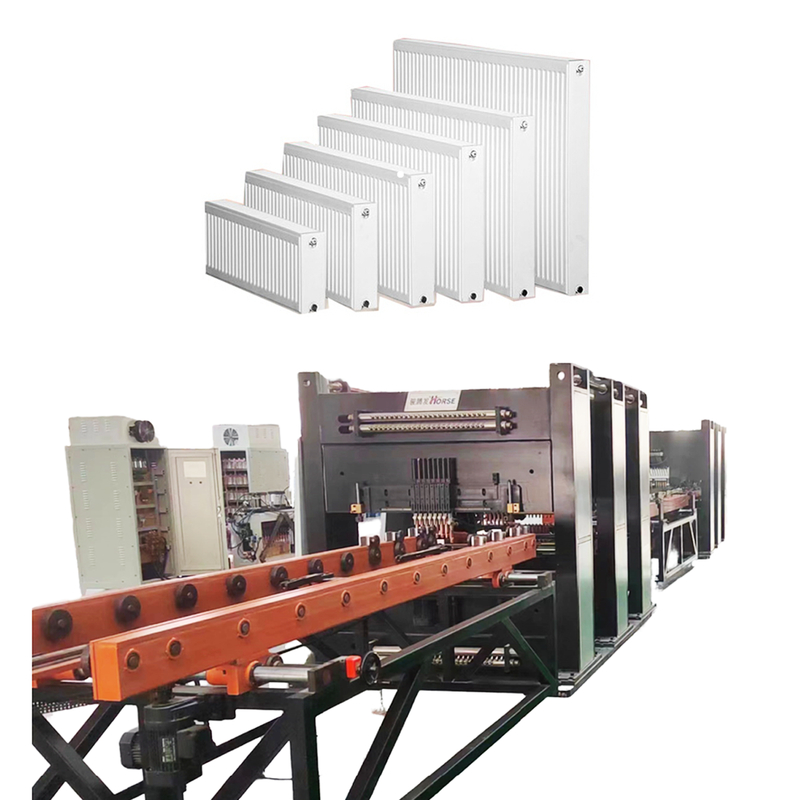 Η ροή εργασίας:Panel truss loading machine → Water channel ring loading and pressing machine → Turning and assembling machine 1 → Panel pre-spot positioning welding machine → Panel gantry multi-spot welding machine → Convection sheet pre-spot welding machine → Convection sheet gantry multi-spot welding machine → U-shaped line transfer conveyor → Long side double-head seam welding machine → Gantry double-head short side seam welding machine 1 → Gantry double-head short side seam welding machine 2 → Two-side cleaning and trimming machine → Shearing machine → Four-corner arc cutting machine → Turning and assembling machine 2 → Double-head three-way automatic welding machine → Support hook automatic welding machine → Automatic pressure airtightness detection machine → Discharging conveyor